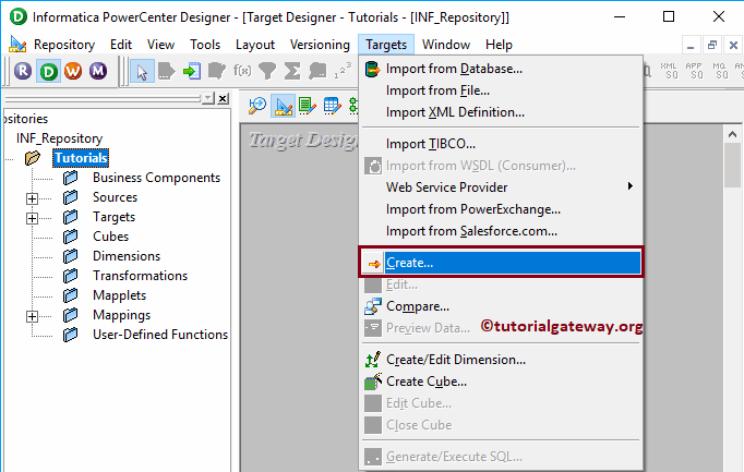 完成后,请单击“创建”按钮以在我们的 PowerCenter 目标设计器中创建一个新的空表。